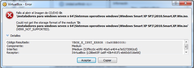 "Error en VirtualBox VBOX_E_IPRT_ERROR (0x80BB0005)", bueno es